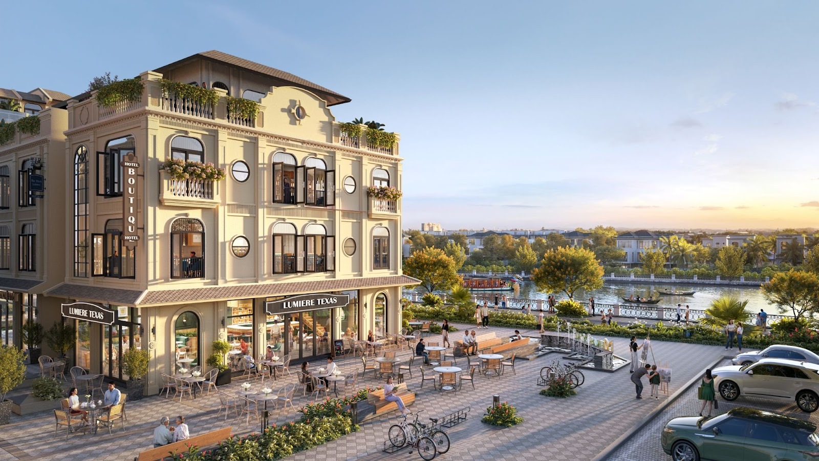 Dòng sản phẩm biệt thự kinh doanh tại dự án Menas Zone Vỹ Dạ – Huế đang trở thành điểm hẹn đầu tư F&B. Dự án sở hữu vị thế hiếm có khi một mặt hướng trọn sông Như Ý, ba mặt còn lại tiếp cận các tuyến huyết mạch Phạm Văn Đồng, Lâm Hoằng, Hàn Mặc Tử. Lợi thế ven sông mở ra tầm nhìn thiên nhiên rộng mở, khí hậu trong lành… vừa đảm bảo kết nối thuận tiện với trung tâm, vừa giữ được chất riêng tư cho trải nghiệm F&B cao cấp trọn vẹn.